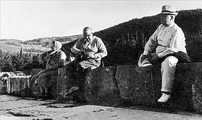 Δεν ήταν όμως άνθρωπος των γραμμάτων αυτός που μου πρωτομίλησε για τον Καζαντζάκη, αλλά ένας ζωγράφος, ο Νίκος Χατζηκυριάκος-Γκίκας. Μου έδειξε μια σειρά σκίτσων από σινική μελάνη για την Οδύσσεια, τριάντα πέντε από τα οποία με μεγάλη μου χαρά χρησιμοποίησα αργότερα ως εικονογράφηση στη μετάφρασή μου αυτού του επικού ποιήματος. Τώρα ανήκουν στη συλλογή της Γενναδίου Βιβλιοθήκης. Στην αρχαία βίλα του Γκίκα, στην Ύδρα, πρωτάρχισα τη μετάφραση των σαράντα μικρών αποσπασμάτων που είχε επιλέξει να εικονογραφήσει, μαζί με μια σύνοψη του ποιήματος γραμμένη από τον Καζαντζάκη.